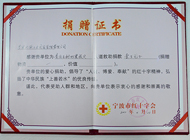 Certificate of Donation in Qinghai Yushu Earthquake