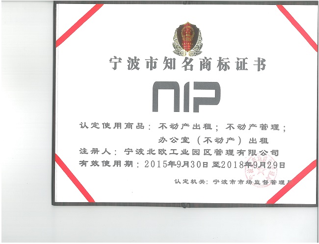 Ningbo well - known trademark certificate